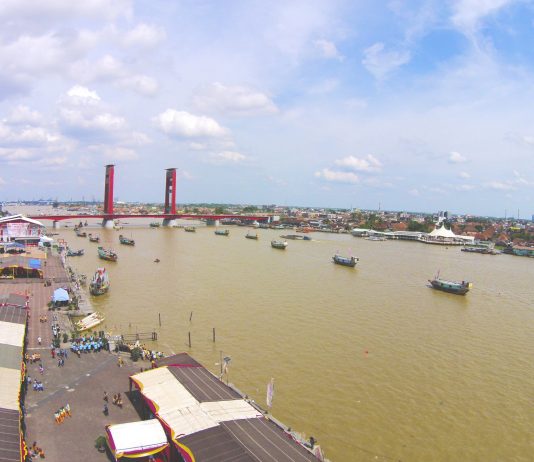 Riak-riak Sungai Batanghari membawa perahu kecil bergerak ke tepian Kota Jambi, mengantarkan penumpang ke dermaga yang terletak di kaki menara tertinggi di kota ini....